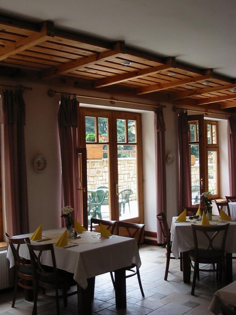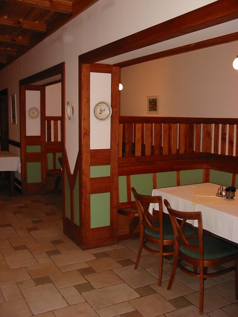 A szállodává átalakított volt üdülő, alagsorába kapott helyet az étterem. A meglévő tér átalakításánál elsődleges szempont volt, hogy a homlokzaton, és a belső térben lévő építészeti elemek az étteremben is megjelenjenek. A fél álmennyezet a torony faburkolatát, a falpillérek burkolata az ajtók osztását idézik.