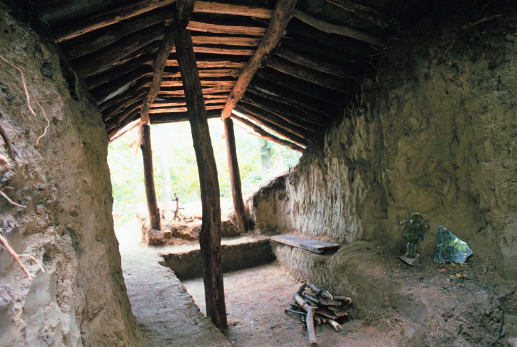 A terület egyik domboldalában található egy beomlott szájú löszbarlang; ennek nyílása elé építettük a Bárkát oly módon, hogy az omladék eltávolítása és a barlang dúcokkal való biztonságossá tétele után az az épített tér bővületeként szolgálhasson. A Bárkát is a földbe süllyesztettük, így teteje került egy szintbe a környező domboldallal. Szerkezete akác (ez korlátlanul rendelkezésre áll a területen), csak rátett illetve összeeresztett kapcsolatokkal. A sűrű szaruzatra került az a gumilemez, mely egy 30 ezer literes honvédségi vizestank anyagából készült; ezt házigazdánk direkt e célra vette. A gumi fölé kerül majd a tervek szerint az a 60-70 cm földréteg, ami a vegetáció folytonosságát biztosíthatja.