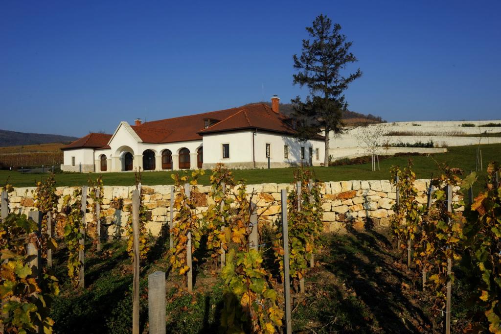 Az épületek építészeti megfogalmazásánál megpróbáltunk a tulajdonosok elképzelései szerinti atmoszférát és alaprajzi elrendezést megtervezni, amely szerencsésen összecsengett a mi felfogásunkkal is. A régi borház teljes rekonstrukciójával és egy szélesebb veranda hozzáadásával egy olyan főépületet hoztunk létre, mely helyet ad a vendégfogadásnak, az irodáknak, valamint a hagyományos hordós must erjesztés helyiségének. A helyreállításnál egy puritán, de nemes karaktert kívántunk visszaállítani, amely víziónk szerint az egykori borház archetípust ötvözi a mai ?céglogo-kúria? megjelenéssel.